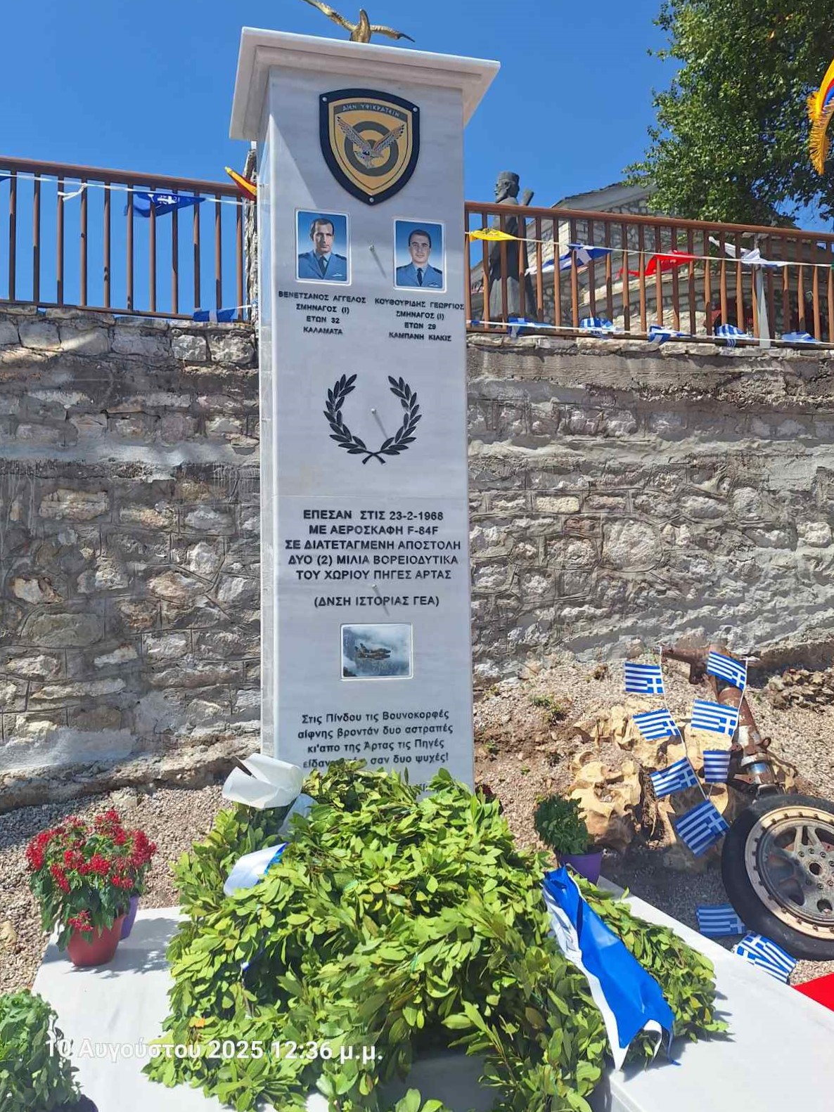 Στις Πηγές Άρτας- Ιστορική Έδρα του δήμου Γ.Καραισκάκη στην Κοιλάδα του Αχελώου και μέσα σε κλίμα συγκίνησης και περηφάνιας την Κυριακή 10-8-2025 η Δ.Ενότητα Τετραφυλίας δήμου Γ.Kαραισκάκη, η Τοπική Κοινότητα Πηγών και η Αδελφότητα Πηγιωτών Άρτας, διοργάνωσαν στο κέντρο των Πηγών Τελετή Αποκαλυπτηρίων Ηρώου προς τιμήν των Σμηναγών Άγγελο Βενετσάνου από την Καλαμάτα και του Σμηναγού Γεώργιου Κουθουρίδη από τον Καμπάνη Κιλκίς οι οποίοι έχασαν τη ζωή τους εν ώρα καθήκοντος στις 23 Φεβρουαρίου 1968 στον Κοκκινόλακο της Πίνδου δύο μίλια Βορειοδυτικά του χωριού μας όπως αναφέρουν τα επίσημα αρχεία της Δ/νσης Ιστορίας της Πολεμικής Αεροπορίας. Η τραγική μοίρα τους συνδέθηκε πλέον με τον τόπο μας.