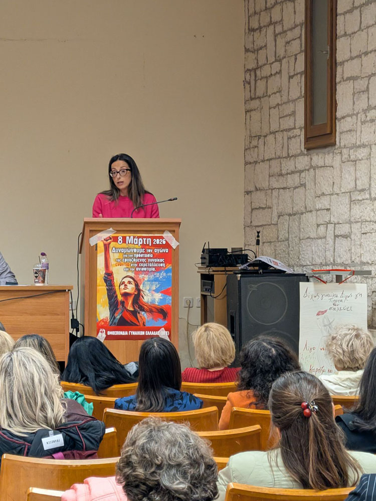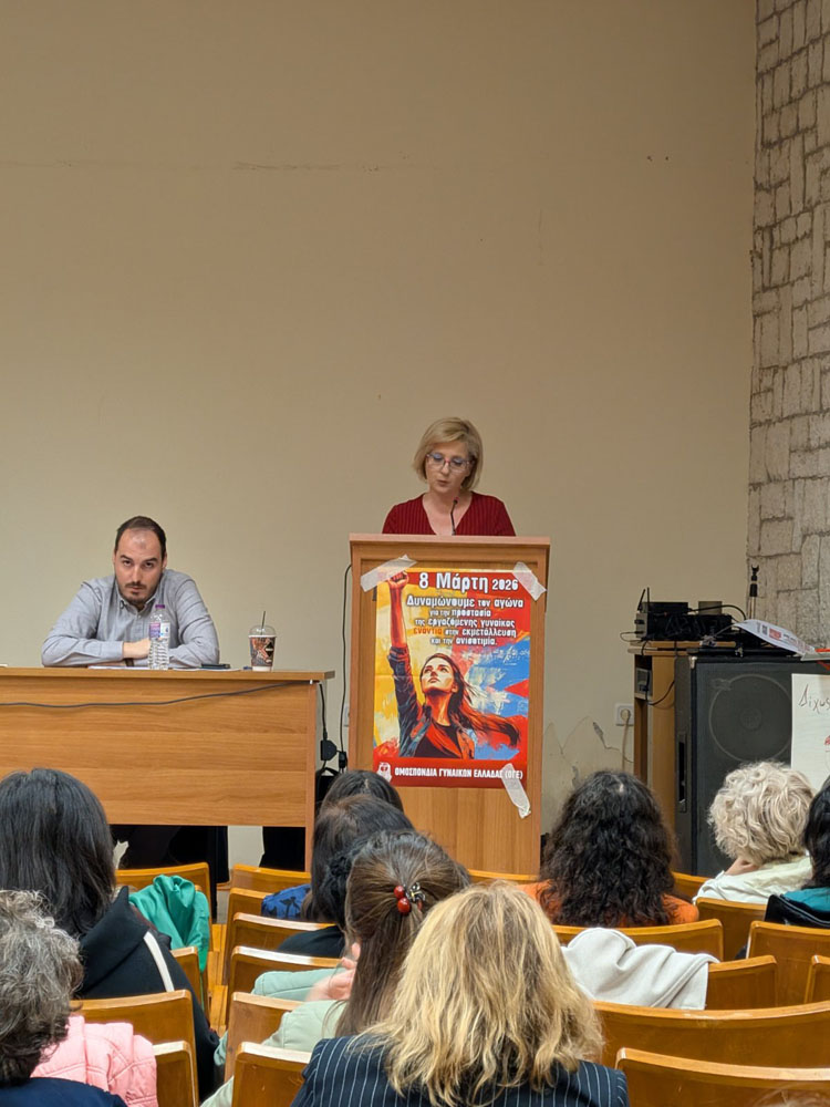 Απευθύνθηκε κάλεσμα στις γυναίκες, να ενισχύσουν τη συλλογική δράση και τη συμμετοχή τους στους συλλόγους και στα σωματεία, τονίζοντας ότι μόνο μέσα από την οργάνωση και τον κοινό αγώνα μπορούν να διασφαλιστούν η υγεία, η αξιοπρέπεια και τα δικαιώματα των γυναικών στην εργασία και στη ζωή.